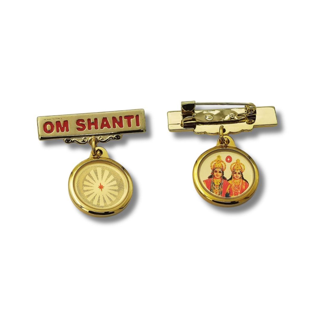 - This exquisite 24K gold-plated Badge celebrates the divine grace of Shiv Baba and Laxmi Narayan, beautifully showcased on its double-sided design.