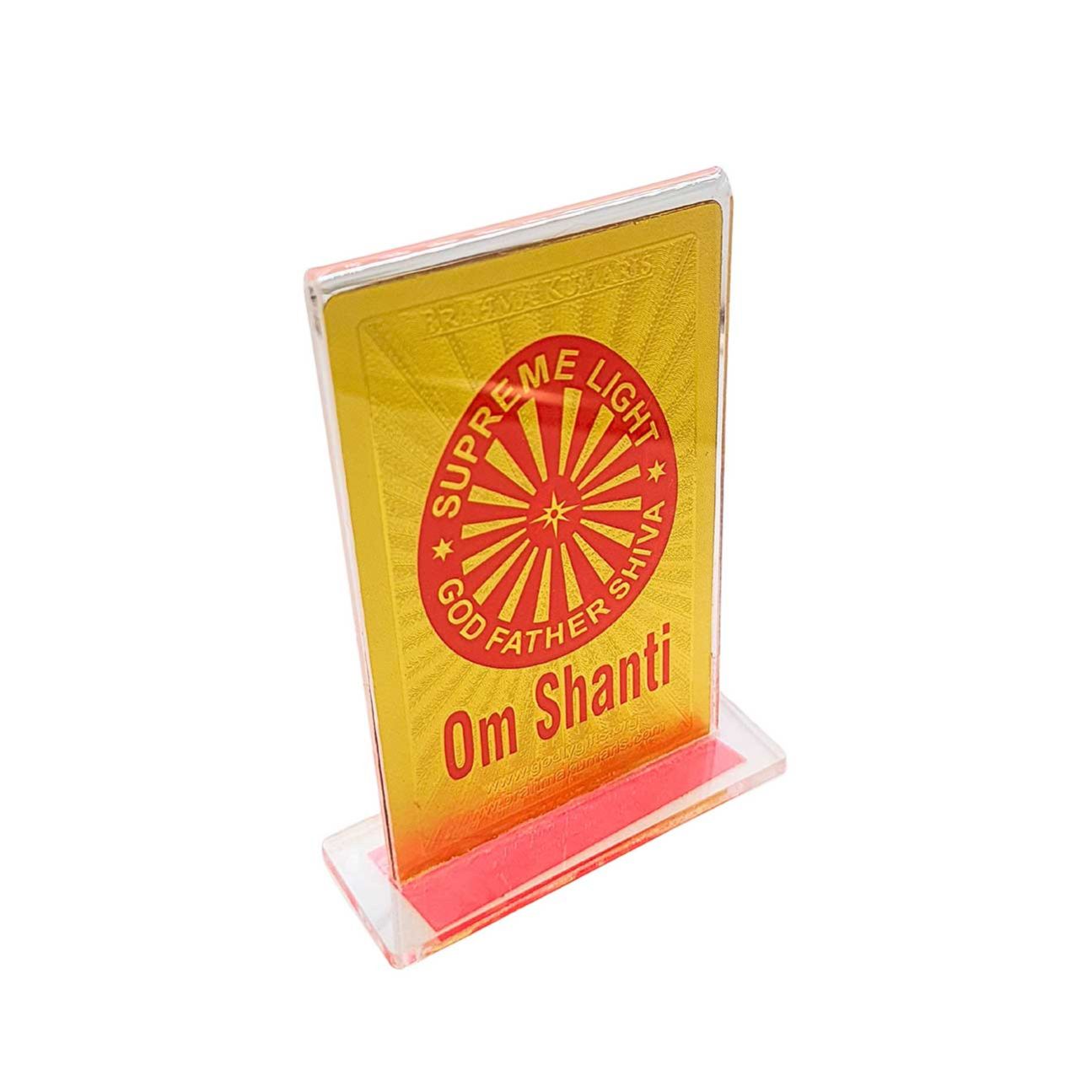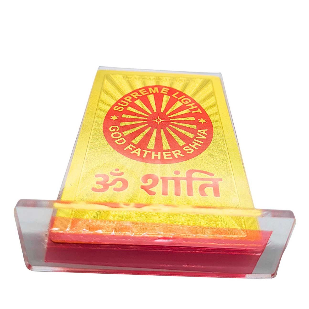 Carry God’s remembrance wherever you go. This beautifully crafted Golden Foil Shiv Baba Car Stand features sacred images of Shiv Baba on both sides along with Om Shanti in Hindi and English—reminding you of peace, purity, and divine guidance every mile of the way.