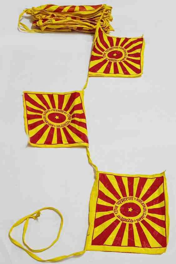 Elevate your environment with the Shiv Baba Jhandi Mala, a beautiful 46 Ft string of 40 pieces featuring the sacred Brahma Kumaris Supreme Soul Print.