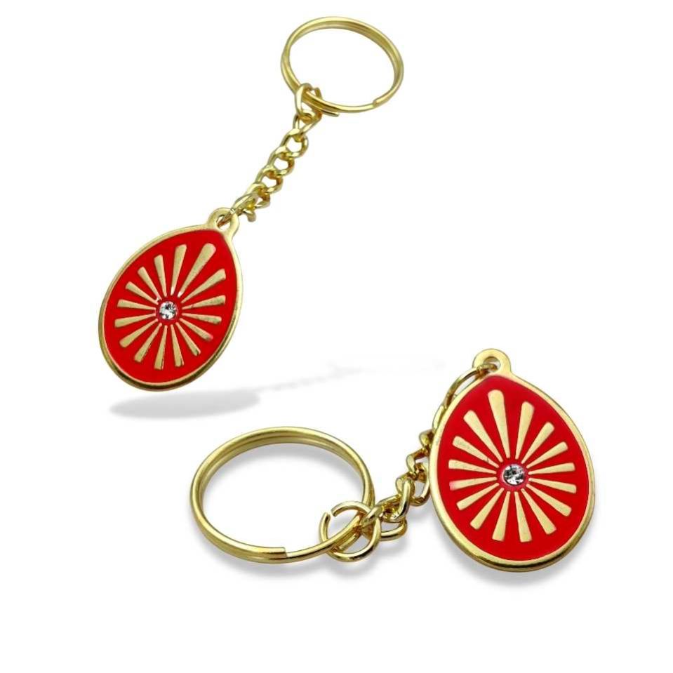 Brahma Kumaris Shiv Baba Red Keychain, Red Meena & Golden Rays With White Diamond Stone On It.